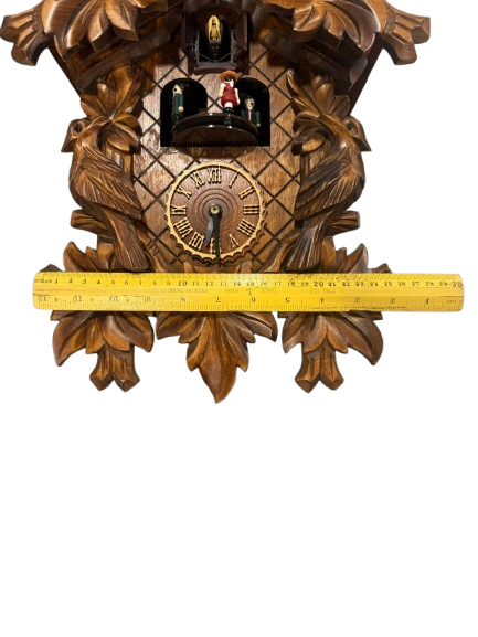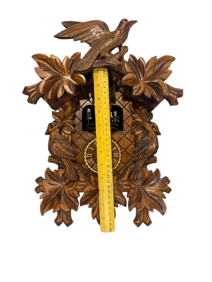 ساعة حائط مصنوعة من الخشب الاصلي شغالة بحالة ممتازة يصل ارتفاعها الر 35 سم العرض 26 سم