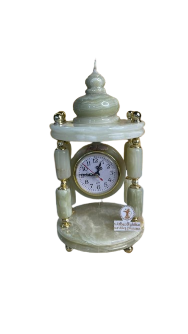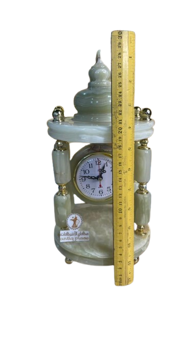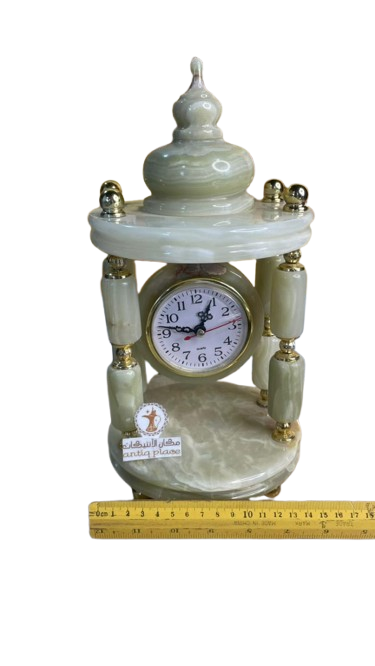 ساعة طاولة مصنوعة من الرخام مخزنة بحالة ممتازة شغالة % 100 مناسبة للعرض والديكور بارتفاع 28 سم والعرض 14 سم