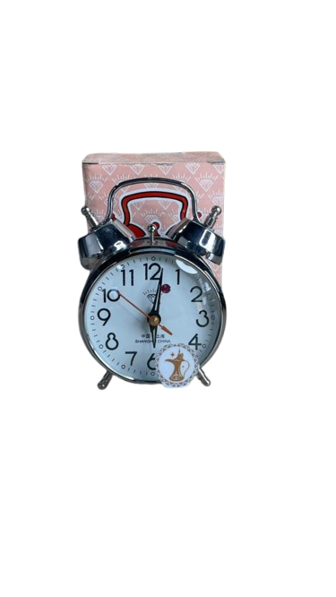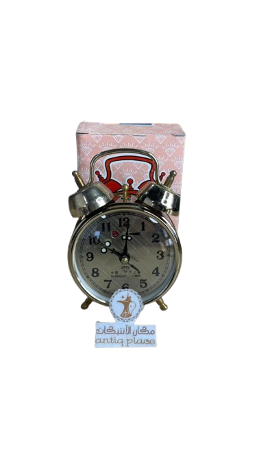 ساعة منبه طاولة مخزنة بحالة ممتازة مع البوكس غير مستخدمة ابدا شغالة بالتكويك بارتفاع 13 سم