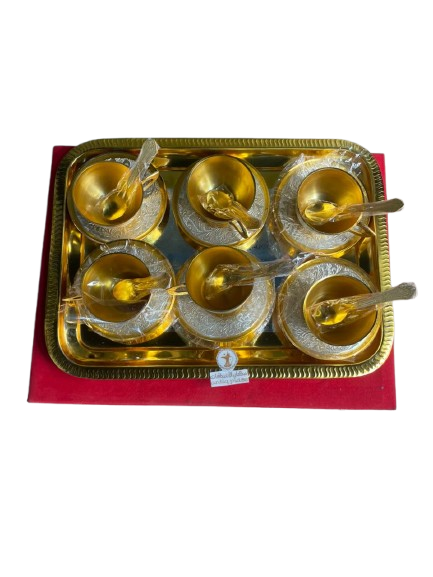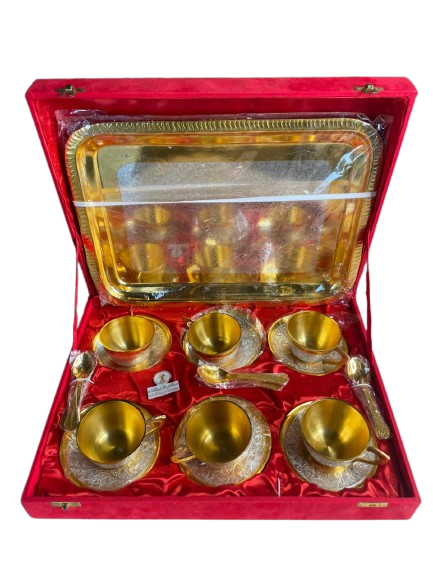 طقم مكون من ٦ اكواب مع الملاعق و ايضا صينية قديم