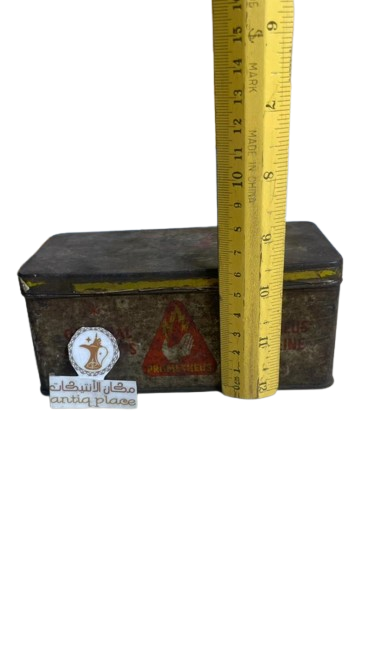 من هدايا السعودية علبة معدنية قديمة جدا مخزنة بحالة جيدة بارتفاع 6سم والعرض 14 سم